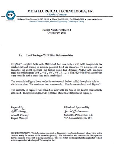 - Each Bolt includes M20 TorqNut to assure proper torque every time and easily confirmed from a distance